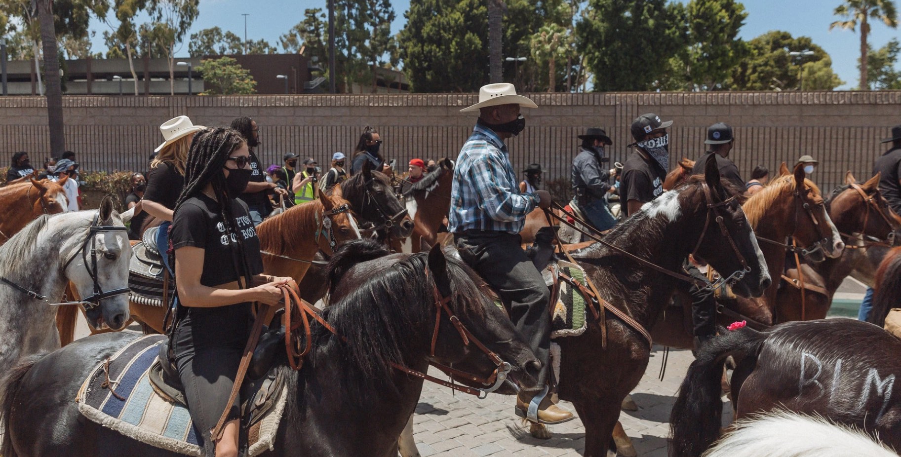 Tijdens recente protesten tegen systematisch racisme in de Verenigde Staten (zomer 2020) gebruiken organisaties als Black Lives Matter de ‘black cowboy’ als symbool voor gelijkwaardigheid. Cowboys, misschien dé vaandeldragers van de Amerikaanse pioniersgeest, waren niet alleen witte ‘Marlboro Mannen’ is de boodschap; cowboys waren een diverse mengelmoes van avontuurlijke mannen uit allerlei culturele groeperingen, waaronder dus de Afro-Amerikaanse, en zij hebben gezamenlijk bijgedragen aan de vorming van de Verenigde Staten. Foto (c) Kayle Reefer / New York Times.
