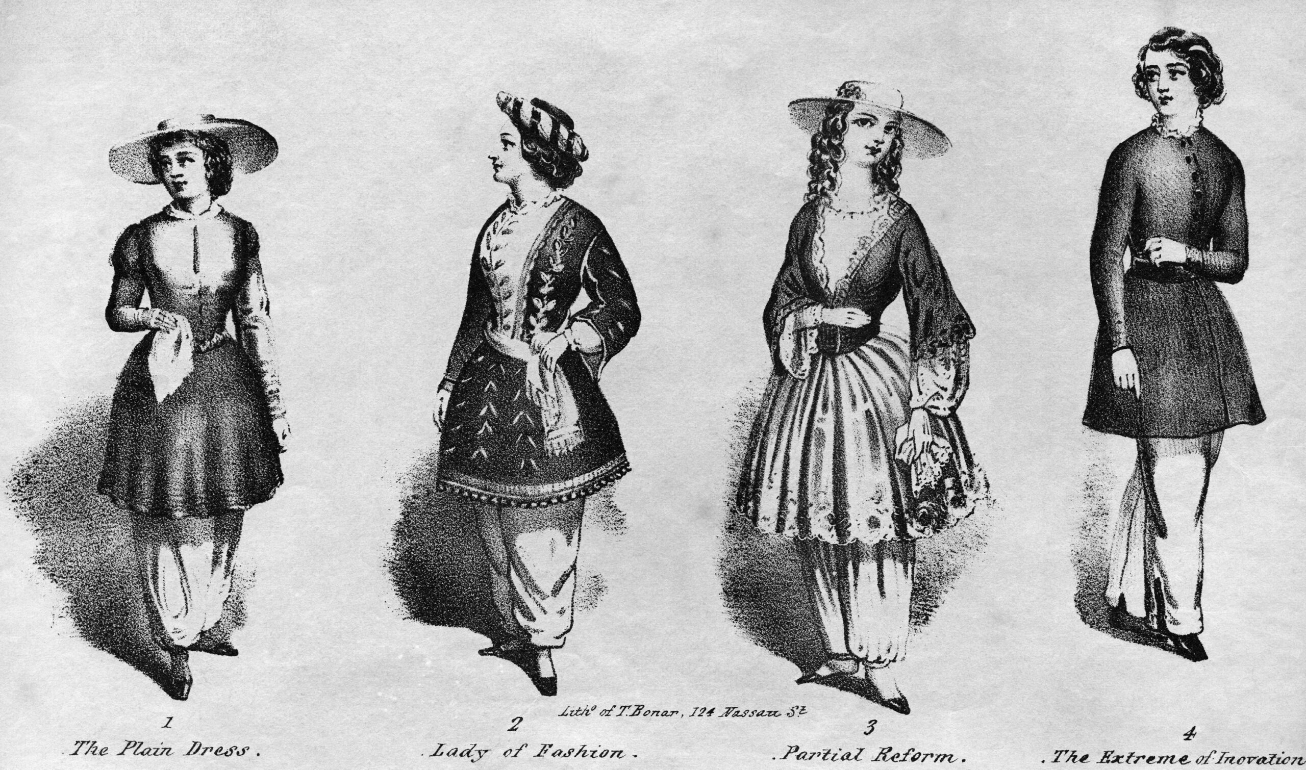 De ‘bloomer’ (geplooide pofbroek) werd in het midden van de 19de eeuw gedragen door vrouwen die zich verzetten tegen de restricties die vrouwen werd opgelegd. Vrijer bewegen (letterlijk: niet in de stalen kooi van een hoepelrok/crinoline) stond voor de draagster van bloomers gelijk aan een gelijkwaardiger ‘vrijer’ positie in de maatschappij.