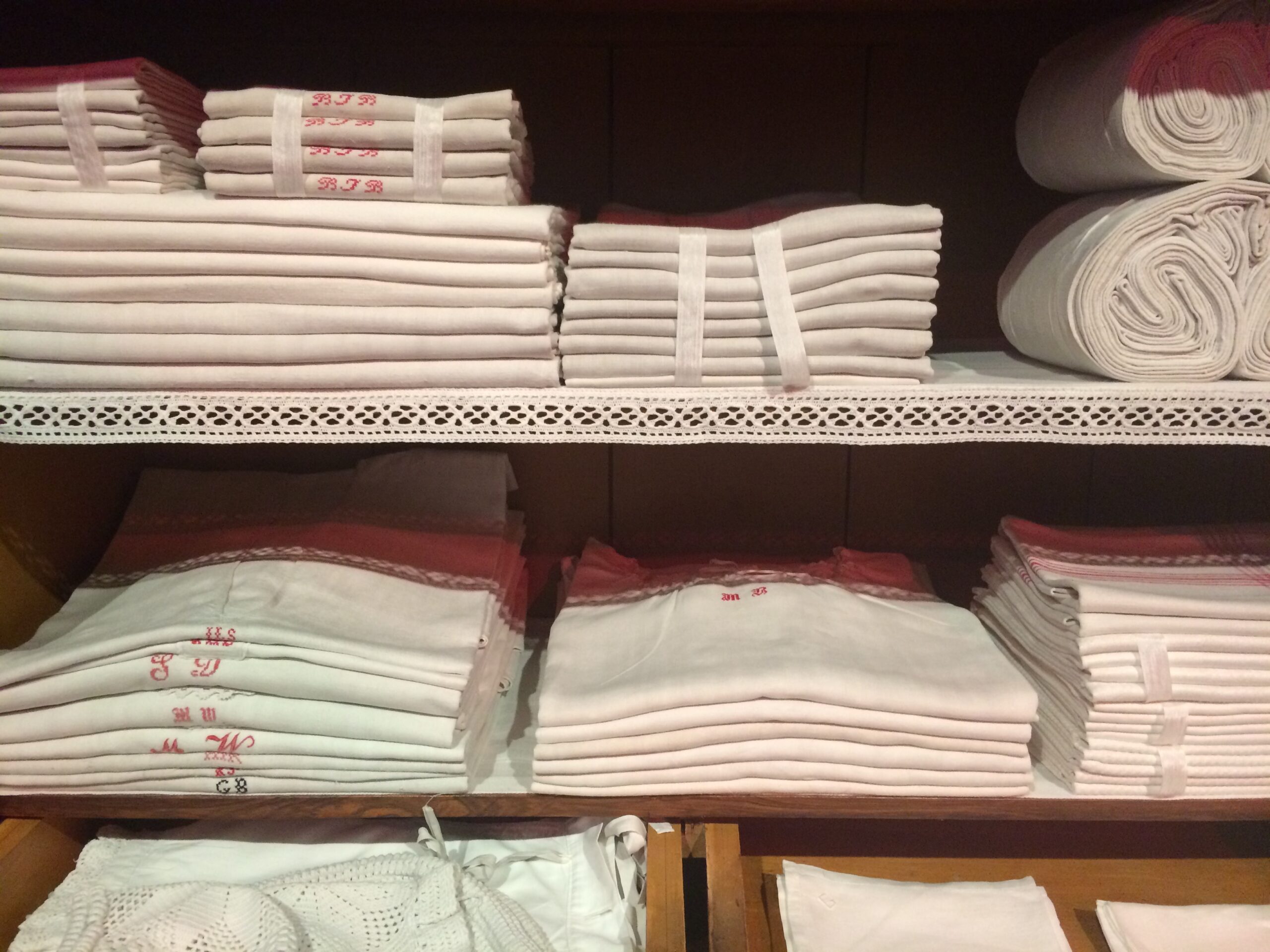 Bed linen, kitchen linen and other household textiles are best ironed, tightly folded and stored on equal piles or in rolls. In order not to be bothered by pests that damage the textile or by fungi (those little black spots), the cabinet must be free of drafts and moisture. Do not overfill the cabinet and place nice-smelling soaps between the stacks. Occasionally run the vacuum cleaner through it. Because our over-over-grandmothers kept their linens that way, theirs is still usable.