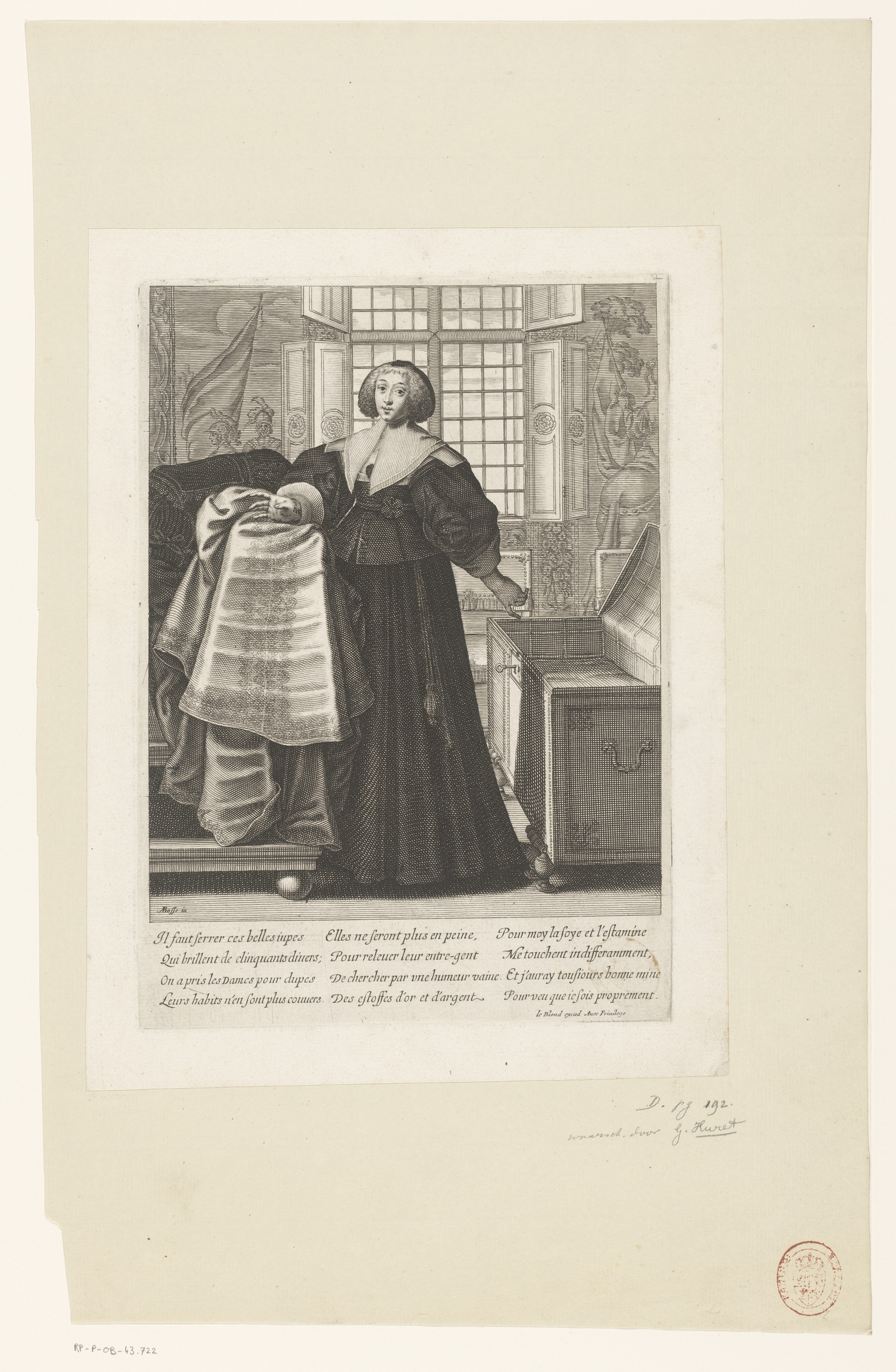 Franse hofdame bij haar kledingkist, 1633. Bron: het Rijksmuseum.