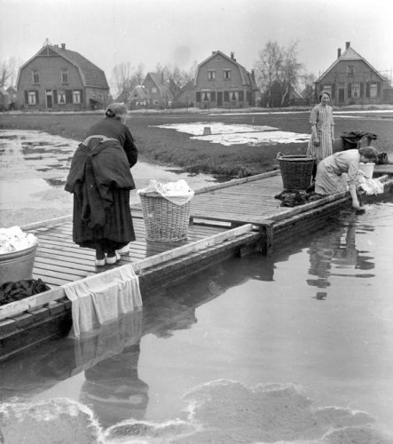 Armere mensen deden de was zelf, tot in de vijftiger jaren zelfs in natuurwater. In Rijssen werd in de Tweede Wereldoorlog de was gedaan in het slootje achter de huizen, vlakbij de bleekvelden waar het natte goed in de zon werd gelegd om verder schoon te worden en te bleken. En wie geen bleekveld had, legde het schone goed gewoon op het dak van haar plaggenhut.