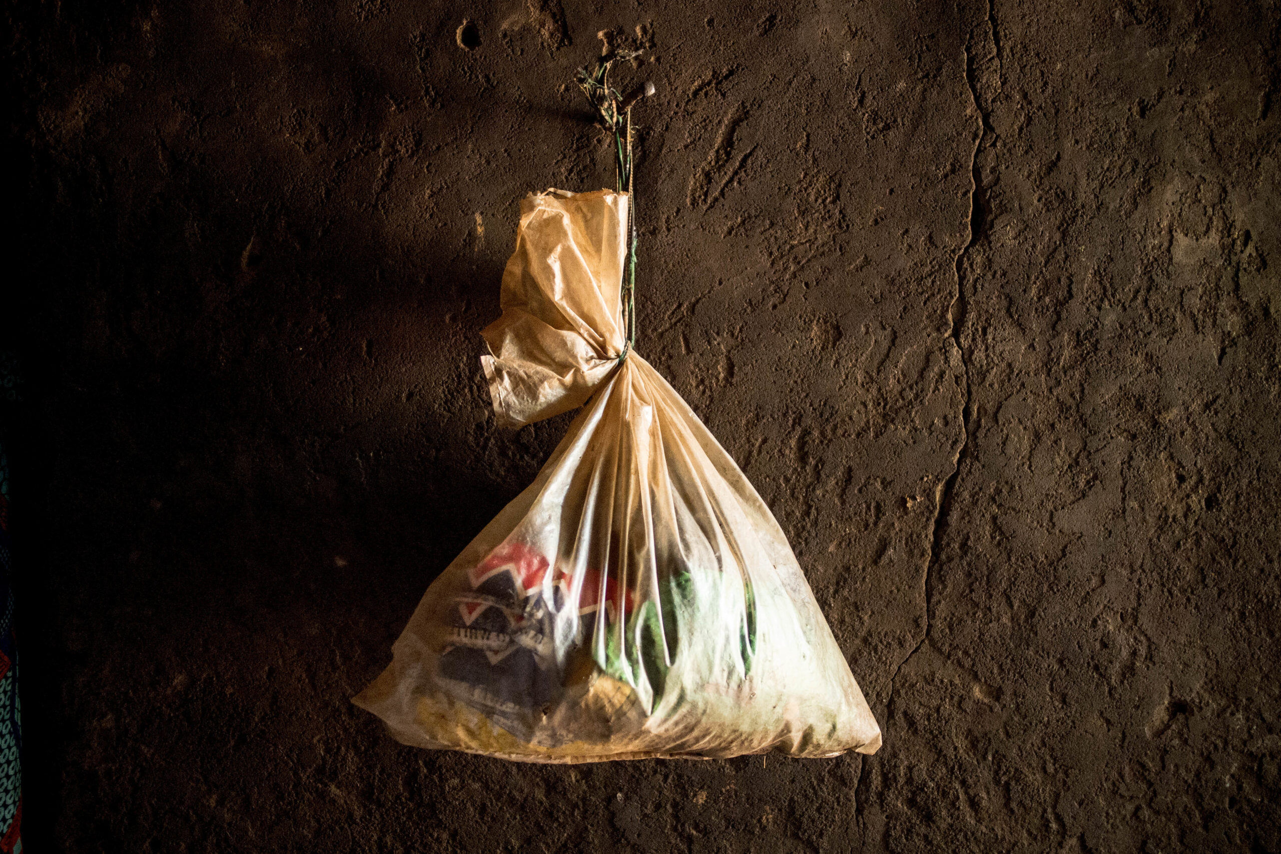 Hoewel soms hangen de betere optie is. De familie Wizilamu uit Malawi leeft van $ 39,– per maand. Kleding wordt lucht- en vochtvrij bewaard in een plastic tasje aan de muur, zodat er geen beestjes bij kunnen komen. Bron: Gapminder Dollarstreet.