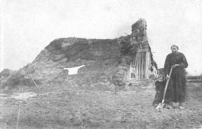 Hemd ligt te bleken op het dak van een plaggenhut te Noordwolde, Friesland, 1900.