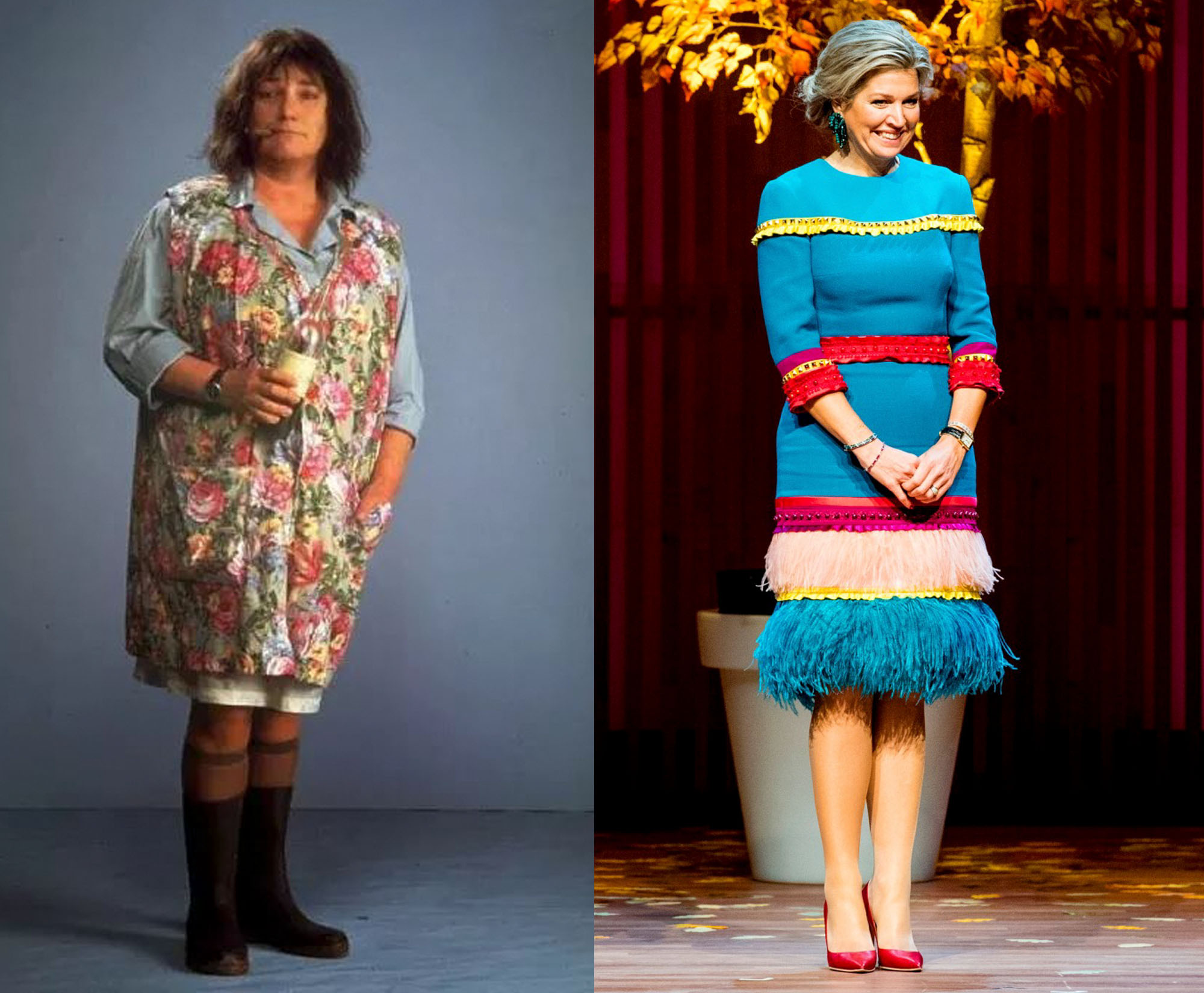 Ma Flodder (gespeeld door actrice Nelly Frijda) heeft haar eigen stijl. Koningin Máxima heeft ook een eigen stijl, maar laat zich graag bijstaan door diverse topontwerpers.