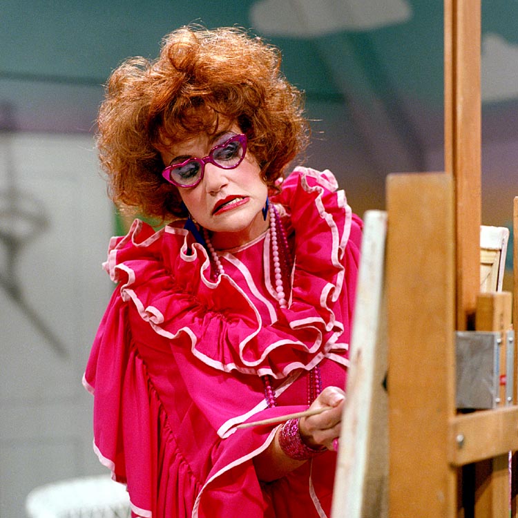 Een stijl die al in de tachtiger jaren werd gespot door televisie- en theatermaker Hetty Heyting, hier als haar artistieke typetje ‘Tante Til’.