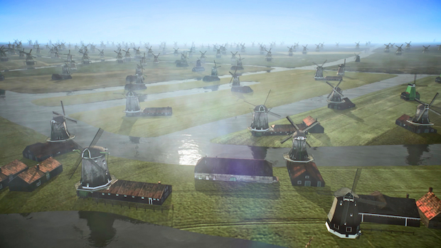 Digitale reconstructie van de Zaanstreek rond 1730. Beeld: maker onbekend.