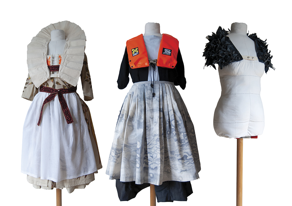 #Nul afval #Hergebruik #Modulair design #Stijven #Plooien #Naaien #Patronen (zie ‘technieken van Zaankogerland’)